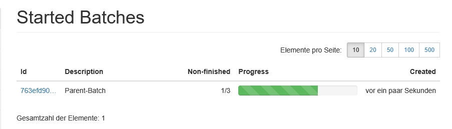 the Parent job stays in state “Started”… Items “Not Finished” 1/3